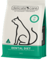Delicate Care™ Dental Diet for Cats is an all life stage food specially formulated to provide complete and balanced nutrition for cats while at the same time promoting dental health. Delicate Care™ Dental Diet for Cats is formulated as a complement to the dental management plan prescribed by your Veterinarian and is suitable for lifelong use.