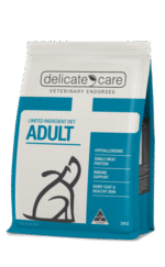 Delicate Care™ Limited Ingredient Diet Adult Dog Food has been especially formulated by one of Australia’s leading nutritionists as a nutritious, palatable and sustainable complete and balanced diet for normally active adult dogs.